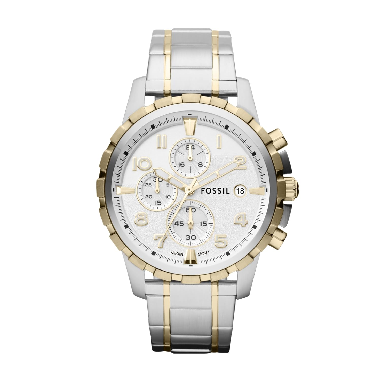 This is one watch which you will make sure you look at it more than once. Made for office warriors, Fossil's eye-catching construction and chronograph functionality play with a modern aesthetic. Sleek and streamlined with a thick two-tone bracelet, it's made for the man who likes his style somewhere between formal and sophisticated.